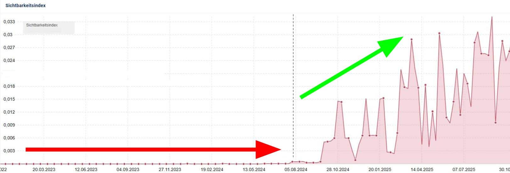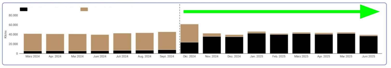 Ein Kunde litt unter stagnierender SEO-Sichtbarkeit. Wir haben die Wende durch unsere eigens entwickelte „Creative Blog AI“ (CBAI) und eine innovative, programmatische SEO-Strategie eingeleitet. Das Ergebnis in nur fünf Monaten: 2x mehr Klicks und 3x mehr Impressionen. Heute rankt der Kunde für starke „Money Keywords“ mit CPCs von bis zu 2,80 € und spart sich teure Werbekosten.